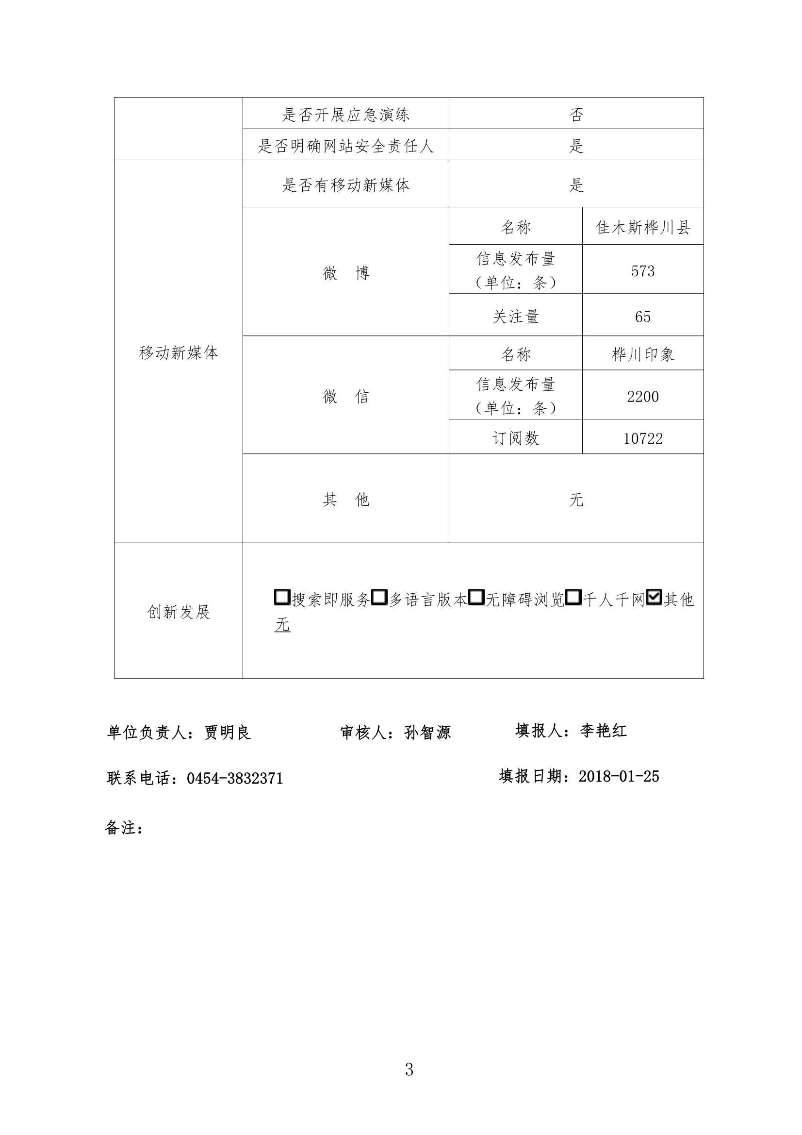 2017年度桦川县人民政府网站工作年度报表