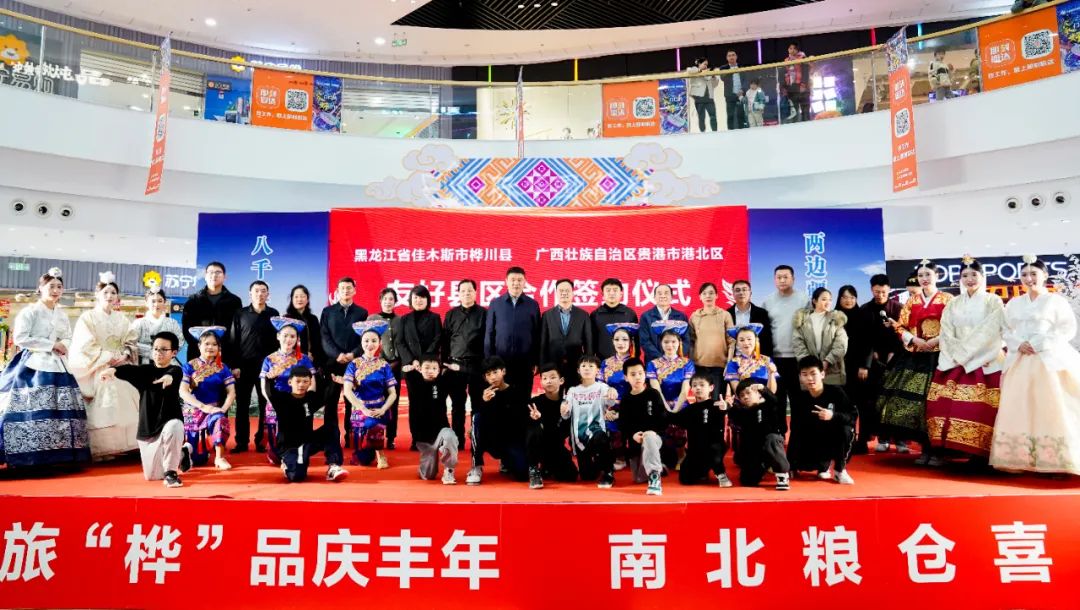 仪式中,双方展示了具有当地文化特色的艺术表演并分别推介了各自的特色农产品。桦川县以其丰富独特的农产品,吸引了与会嘉宾的目光。而港北区则以其知名的西江牛奶、沃柑以及瑶山鸡初生蛋等优质农产品,展示了其独特的农业魅力。双方均表示,此次合作是一个新的开始,未来两地将不断拓宽合作领域,提升合作水平,以实际行动践行区域合作的发展理念,共同书写南北合作的新篇章。