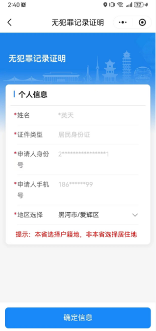 要办理无犯罪记录证明,却不知道如何快速办理,为持续优化便民服务,让数据多跑路、群众少跑腿,现推出办理指南,无需跑派出所、无需排队等候,通过黑龙江龙易办小程序即可,足不出户完成申请、查询、领取全流程,办事更省心、更便捷!