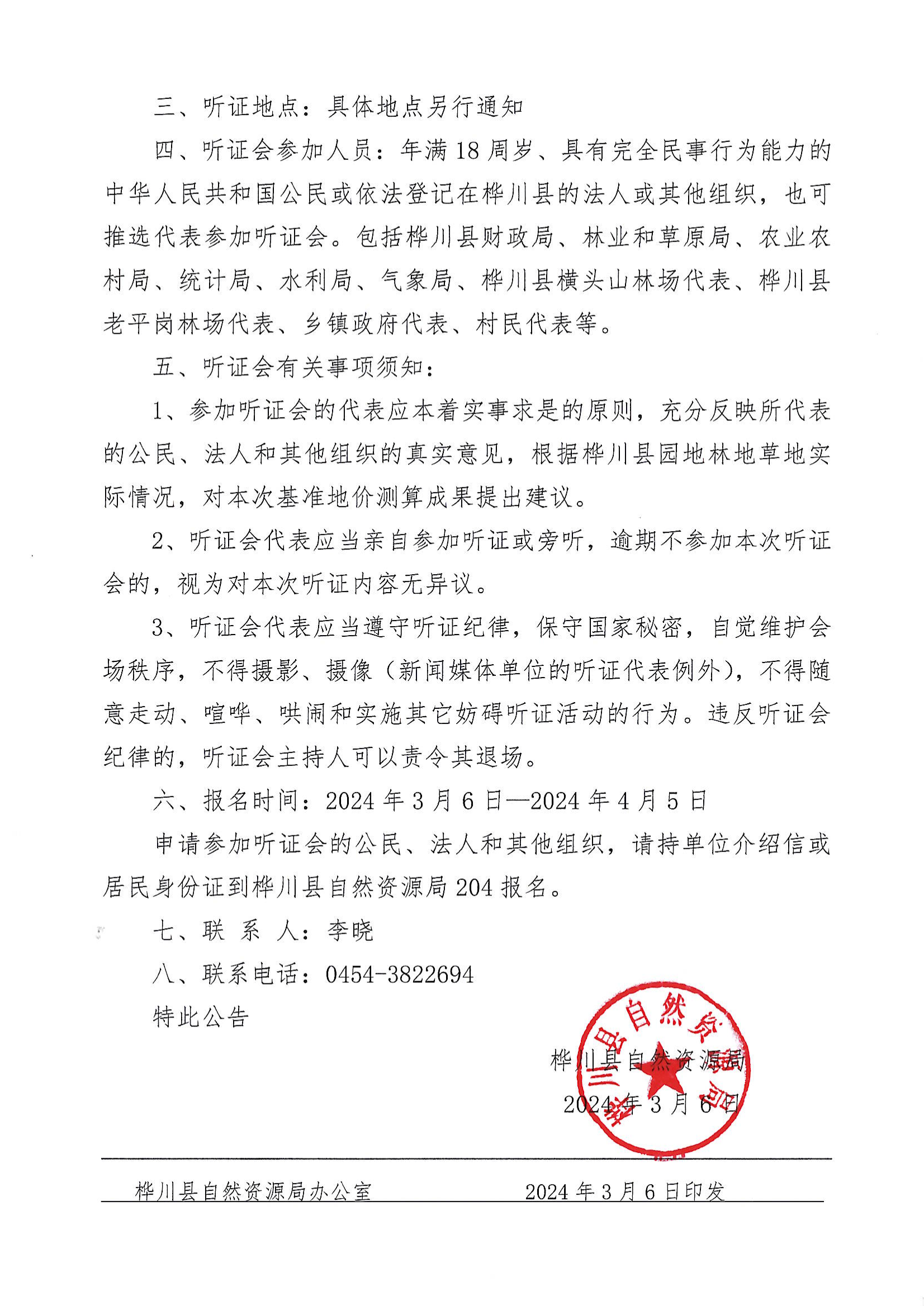 桦川县园地、林地、草地基准地价测算成果听证会公告